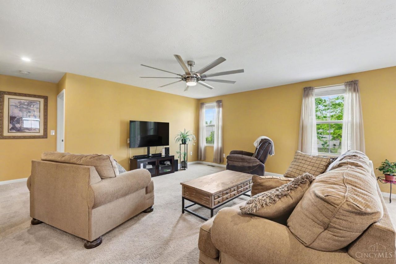 Move-in-ready one-level living! Newer open floor plan ranch featuring spacious living/dining areas, eat-in kitchen with center island, primary suite with attached bath + walk-in closet, convenient laundry/utility room, and full basement with upgraded egress window and bath rough in. Ceiling fans in all bedrooms. Blinds on all windows. Save big on energy bills thanks to solar panels! Plus an attached 2-car garage and oversized rear patio overlooking a level grassy yard. All in a quiet community with sidewalks and easy access to OH-125!